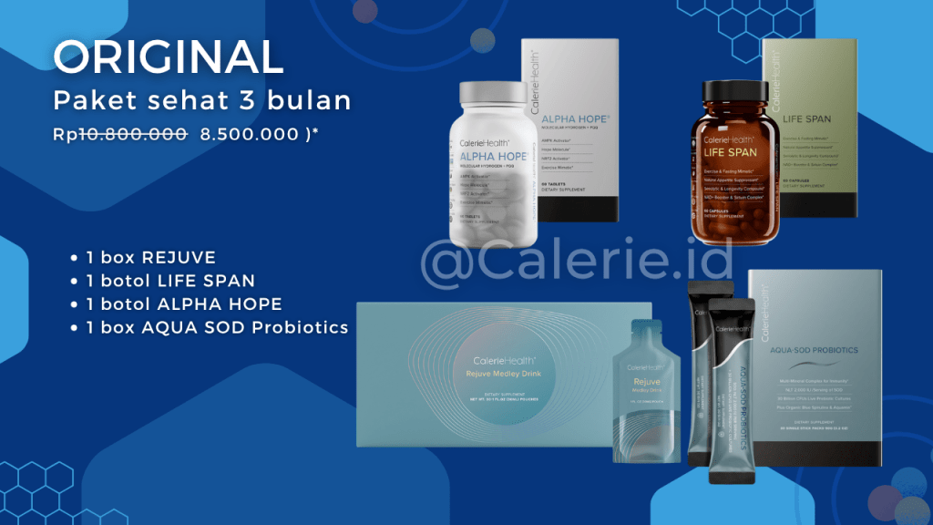 Untuk mendapatkan terapi diabetes yang lebih menyeluruh dan alami, program sehat ini melibatkan kombinasi sejumlah suplemen premium dari Calerie Life USA antara lain: