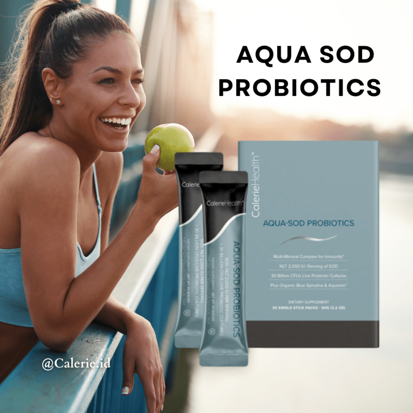 AQUA SOD Probitotics. Superantioksidan SOD ditambah paduan 30 milyar CFUProbiotics untuk sehatkan pencernaan ditambah 72 trace minerals dan sejumlah asam amino untuk kesehatan menyeluruh.