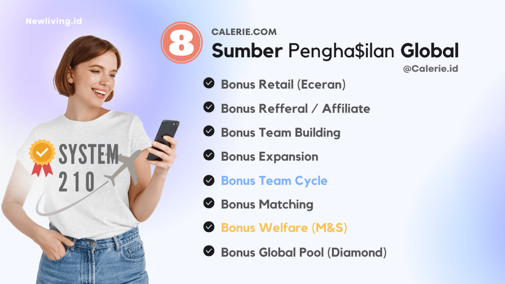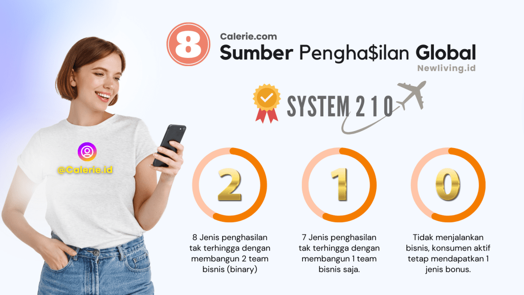 Dengan sistem 210 siapapun bisa berpenghasilan besar dari bisnis Calerie Life, bebas waktu dan tempat, dan tak perlu drama stress.