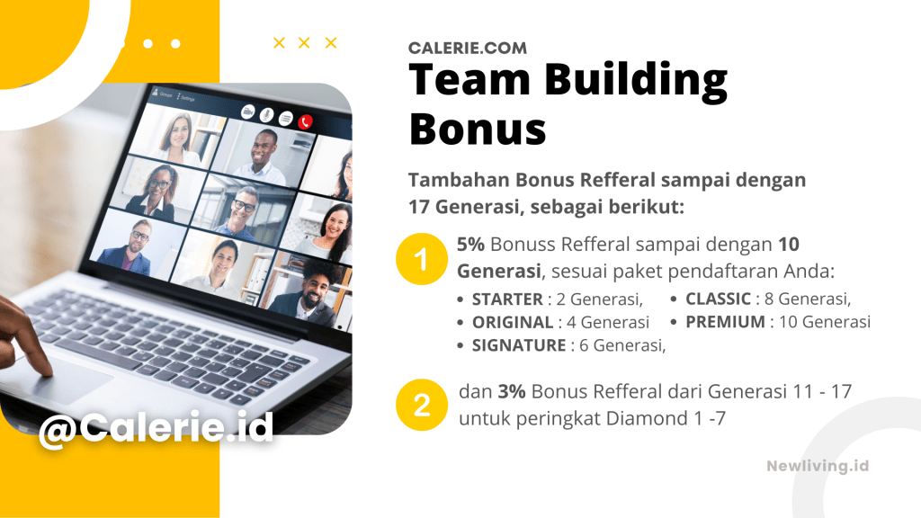 Calerie Life tidak menjanjikan penghasilan bonus yang tanpa usaha. Besaran penghasilan komisi Calerie Life yang diperoleh, bisa bervariasi sesuai dengan hasil kerja bersama team.