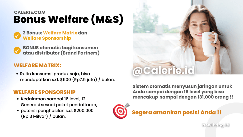 Bonus Welfare MS merupakan tambahan bonus unik yang diberikan oleh Calerie Life, max s.d $200.000 (sekitar Rp3 milyar) / bulan.